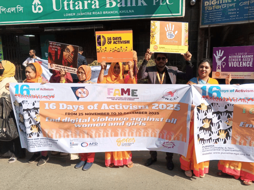 La iniciativa conjunta de PURNIMA, Sarbojanin Unnayan Sangstha y Nabodigonto Nari Unnayan Sangstha demuestra un firme compromiso con una sociedad más justa, inclusiva y libre de violencia. A medida que avanza la campaña, las tres organizaciones hacen un llamamiento a los ciudadanos, especialmente a los hombres y los niños, para que se movilicen como aliados para promover la dignidad, el respeto y la igualdad de las mujeres y las niñas en todo Bangladesh.